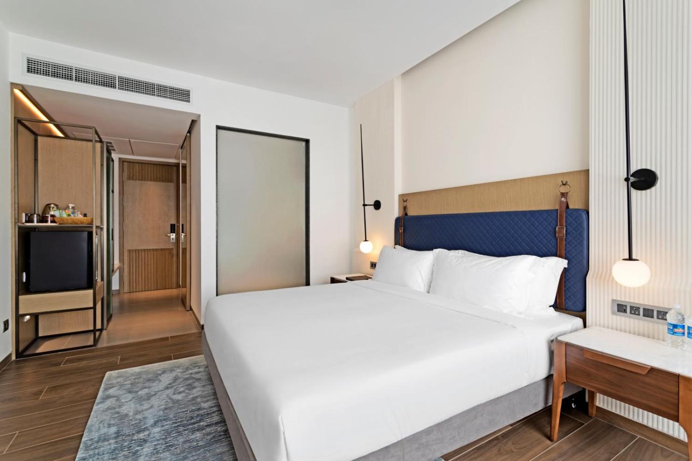 Deluxe Double Room. Offering free toiletries and bathrobes, this double room includes a private bathroom with a shower, a hairdryer and slippers. The spacious air-conditioned double room offers a flat-screen TV with streaming services, a minibar, a tea and coffee maker, a wardrobe as well as city views. The unit has 1 bed. ;